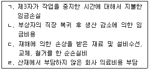 시몬즈(Simonds)의 재해 코스트 평가에서 총재해 코스트는 산재 보험 코스트와 비보험 코스트의 합이다. 비보험 코스트 항목만을 모두 고른 것은?