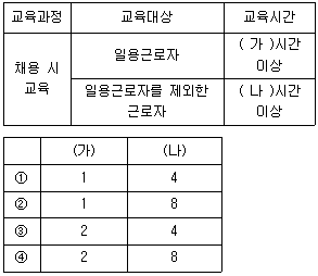 「산업안전보건법 시행규칙」상 사업주가 근로자에게 실시해야 하는 안전보건교육시간으로 (가), (나)에 들어갈 숫자를 바르게 연결한 것은?