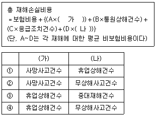 다음은 시몬즈(R. H. Simonds) 방식의 재해손실비용 계산식이다. (가), (나)에 들어갈 내용을 바르게 연결한 것은?