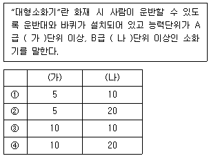 「소화기구 및 자동소화장치의 화재안전기준」상 대형소화기에 대한 설명에서 (가), (나)에 들어갈 숫자를 바르게 연결한 것은?