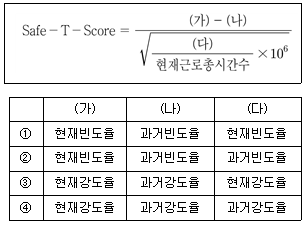 산업재해율 평가 방법 중 Safe-T-Score를 산출하는 다음 식에서 (가)~(다)에 들어갈 내용을 바르게 연결한 것은?
