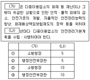 「다중이용업소의 안전관리에 관한 특별법」상 안전관리기본계획의 수립ㆍ시행에 대한 설명에서 (가), (나)에 들어갈 내용을 바르게 연결한 것은?