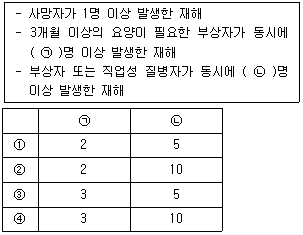 「산업안전보건법 시행규칙」상 중대재해의 범위에 대한 설명에서 ㉠, ㉡에 들어갈 숫자를 바르게 연결한 것은?