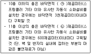 「건축물의 피난ㆍ방화구조 등의 기준에 관한 규칙」에서 방화구획의 설치기준에 대한 규정으로 ㉠, ㉡에 들어갈 내용은? (순서대로 ㉠, ㉡)