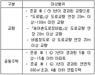 「시설물의 안전 및 유지관리 실시 등에 관한 지침」상 3종 시설물의 범위에 대한 규정으로 ㉠, ㉡에 들어갈 내용은? (순서대로 ㉠, ㉡)