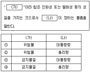 「위험물안전관리법」상 용어 정의로서 (가), (나)에 들어갈 내용을 바르게 연결한 것은?