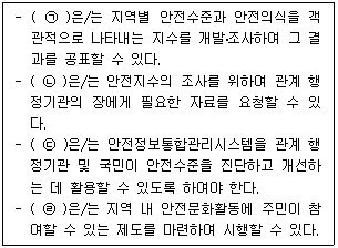 다음은 「재난 및 안전관리 기본법」상 안전문화 진흥에 대한 규정이다. ㉠~㉣에 들어갈 주체가 나머지 셋과 다른 하나는?