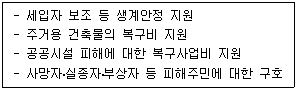 「재난 및 안전관리 기본법」상 사회재난 중 특별재난지역으로 선포된 경우, 국가와 지방자치단체가 지원할 수 있는 것만을 모두 고르면 몇 개인가?