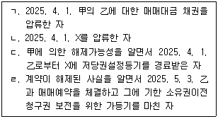 甲은 2025. 3. 1. 乙에게 甲소유의 X토지를 매도하고 2025. 3. 7. 乙명의로 소유권이전등기를 경료해 주었는데, 2025. 5. 1. 위 매매계약이 적법하게 해제되었다. 이 경우 해제의 소급효로부터 보호받는 제3자에 해당하지 않는 자를 모두 고른 것은? (다툼이 있으면 판례에 따름)