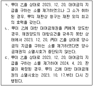 甲은 乙에 대하여 2023. 10. 17.을 변제기로 하는 대여금채권을 갖고 있다. 이에 관한 설명으로 옳은 것을 모두 고른 것은? (다툼이 있으면 판례에 따름)