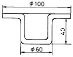 그림과 같은 플랜지 붙임 원통형 용기를 우그리기 할 때 블랭크 지름(D)를 계산하면 몇 mm인가 ? (단, 굽힘 부분의 굽힘 반지름은 무시한다.)