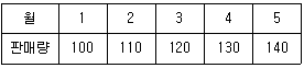 표는 어느 회사의 월별 판매실적을 나타낸 것이다. 5개월 이동평균법으로 6월의 수요를 예측하면?