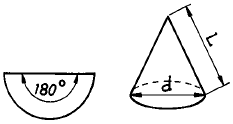 그림과 같이 반원형으로 전개된 판금을 직원뿔로 제작한다면 L과 d와의 관계는?
