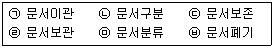 다음 중 문서의 파일링 절차에 대한 순서를 가장 적절하게 나열한 것은?(일부 환경에서 정상적으로 보기가 보이지 않아서 괄호뒤에 다시 표기하여 둡니다.)