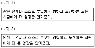 <보기 1>의 문장이 <보기 2>의 문장으로 수정되기 위해 필요한 교정 부호들로만 올바르게 짝지어진 것은?