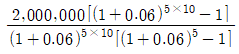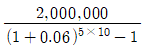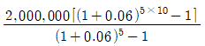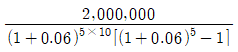 5년마다 2,000,000원씩 50년간 수익을 얻는 산림사업이 있다면, 이 수익의 전가합계를 구하는 식은? (단, 이율은 6%로 한다)