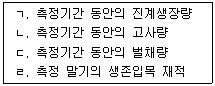 생장주기에 따른 생장량 측정방법 중 진계생장량을 포함하는 순생장량을 구하는 수식의 구성인자로만 묶은 것은?