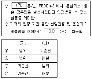 다음은 REDD+ 기본구조의 구성요소에 대한 설명이다. (가), (나)에 들어갈 내용을 바르게 연결한 것은?