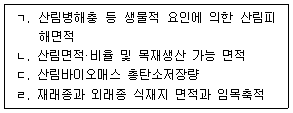 다음 중 「지속가능한 산림경영에 관한 대한민국 국가보고서 2014」에 따른 지속가능한 산림경영을 위한 산림생태계의 생산력유지 기준에 해당되는 지표들로만 묶은 것은?