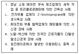 우리나라에서 발생한 대표적인 직업병 집단 발생 사례들이다. 가장 먼저 발생한 것부터 연도순으로 나열한 것은?