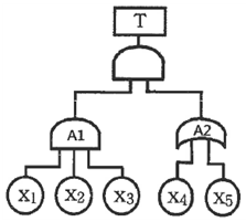 서로 독립인 기본사상 x1~x5 로 구성된 다음의 결함수(Fault Tree)에서 정상 사상 T에 관한 최소절단집합(minimal cut set)을 모두 구한 것은?