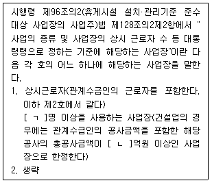 산업안전보건법령상 휴게실 설치·관리기준 준수대상 사업장에 관한 규정의 일부이다. [ ]에 들어갈 숫자를 옳게 나열한 것은?