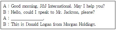 다음 전화대화의 내용흐름상 빈칸에 가장 알맞은 것은?