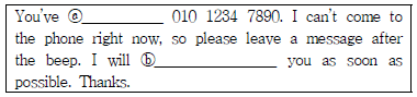 다음의 자동응답기 이용 시 ⓐ, ⓑ에 들어갈 가장 적절한 표현은?