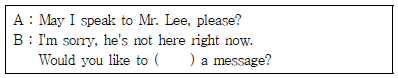 다음 전화대화에서 ( ) 안에 들어갈 가장 알맞은 것은?