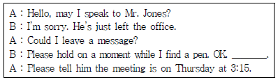 다음 대화의 빈 칸에 들어갈 내용으로 가장 적절한 것은?
