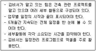 팀비서인 김미소 비서는 팀의 일정관리를 위해 다양한 일정표를 활용하고 있다. 다음에 해당하는 요소를 모두 충족한 가장 적절한 일정표는?