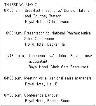 다음 일정표의 내용과 일치하지 않는 것은?