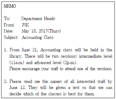 다음 memo에 대한 설명으로 가장 적절하지 않은 것을 고르시오.