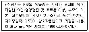 A상담사가 다음의 상담계획을 수립 할 때 적합한 이론적 접근은?
