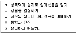베스(E. Bass)와 데이비스(L. Davis)의 성폭력 피해자에 관한 상담 과정을 순서대로 바르게 나열한 것은?