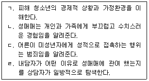 성매매 피해 청소년을 상담할 때 유의해야 할 사항으로 옳은 것을 모두 고른 것은?