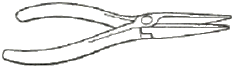 좁은 지점까지 도달 할 수 있는 긴 물림 턱을 가지고 있으며 손가락으로 접근할 수 없는 좁은 장소의 부품을 잡거나 구부리는데 적절한 그림과 같은 공구는?