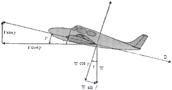 그림과 같이 상승비행 중인 항공기의 진행 방향에 대한 힘의 평형식과 항공기의 날개 양력방향으로 작용하는 힘의 평형식을 옳게 나열한 것은?