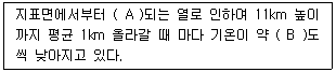 대류권에서의 고도와 기온 관계를 설명한 것이다. A, B에 들어갈 내용을 옳게 짝지은 것은?