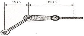 토크렌치와 연장 공구를 이용하여 볼트를 400in-lb로 체결하려 한다. 토크렌치와 연장 공구의 유효길이는 각 각 25in 와 15in 이라면 토크렌치의 지시값이 몇 in-lb를 지시할 때까지 죄어야 하는가?
