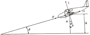 무게가 W 인 활공기 또는 기관이 정지된 비행기가 일정한 속도(V)와 활공각 θ 로 활공 비행을 하고 있을 때의 양력(L)방향과 항력(D)방향으로 힘을 옳게 나타낸 것은?