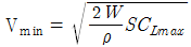 를 이용하여 구할 수 있다. 이 식에서 S가 의비하는 것은? (단, W : 항공기 중량, ρ : 밀도, CLmax : 최대양력계수이다.)
