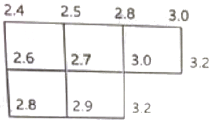 땅고르기 작업을 위해 토지를 격자(4m×3m)모양으로 분할하고, 각 교점의 지반고를 측량한 결과가 그림과 같을 때, 전체 토량은? (단, 표고 단위 : m)