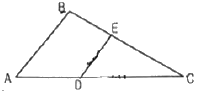 그림과 같은 삼각형 ABC 토지의 한 변 AC상의 점 D와 BC상의 점 E를 연결하고 직선 DE에 의해 삼각형 ABC의 면적은 2등분 하고자 할 때 CE의 길이는? (단, AB=40m, AC=80m, BC=70m, AD=13m)