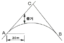 종단곡선을 곡선반지름이 1000m인 원곡선으로 설치할 경우, 시점으로부터 30m 지점의 종거는?