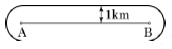 AB의 길이가 20km일 때 이 직선으로부터 1km의 버퍼링 분석을 실시하고자 할 때 생성되는 폴리곤의 면적(km2)은?