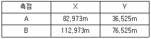 터널의 시점(A)과 종점(B)을 결정하기 위하여 폐합다각측량을 한 결과 두 점의 좌표가 표와 같다. A에서 굴착하여야 할 터널 중심선의 방위각은?