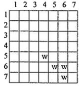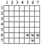 그림은 어느 지역의 토지 현황을 나타내고 있다. 이 지역을 촬영한 7×7 영성에서 “호수”의 훈련지역(training field)을 선택한 결과로 적합한 것은?