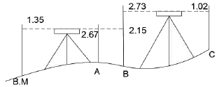 그림에서 B.M의 지반고가 89.81m라면 C점의 지반고는? (단, 단위 : m)