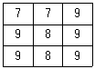 아래의 레시터 데이터에 최소값 윈도우(Min kernel)를 3×3 크기로 적용한 결과로 옳은 것은?